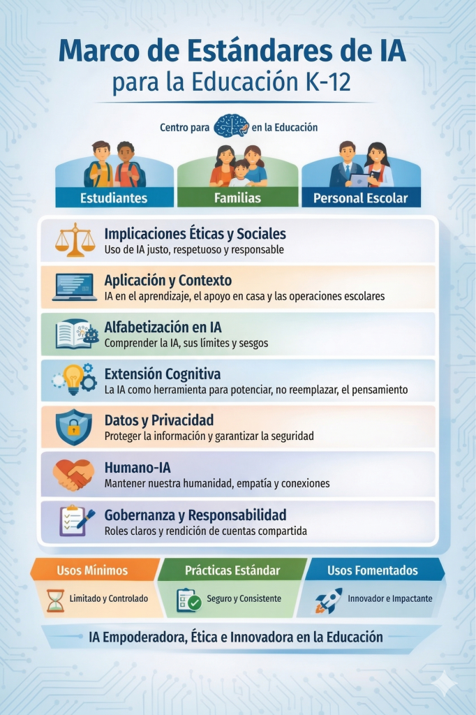 Los estándares y políticas de inteligencia artificial del Centro ofrecen un marco práctico y centrado en las personas para ayudar a las escuelas a adoptar la IA con claridad, coherencia y confianza.